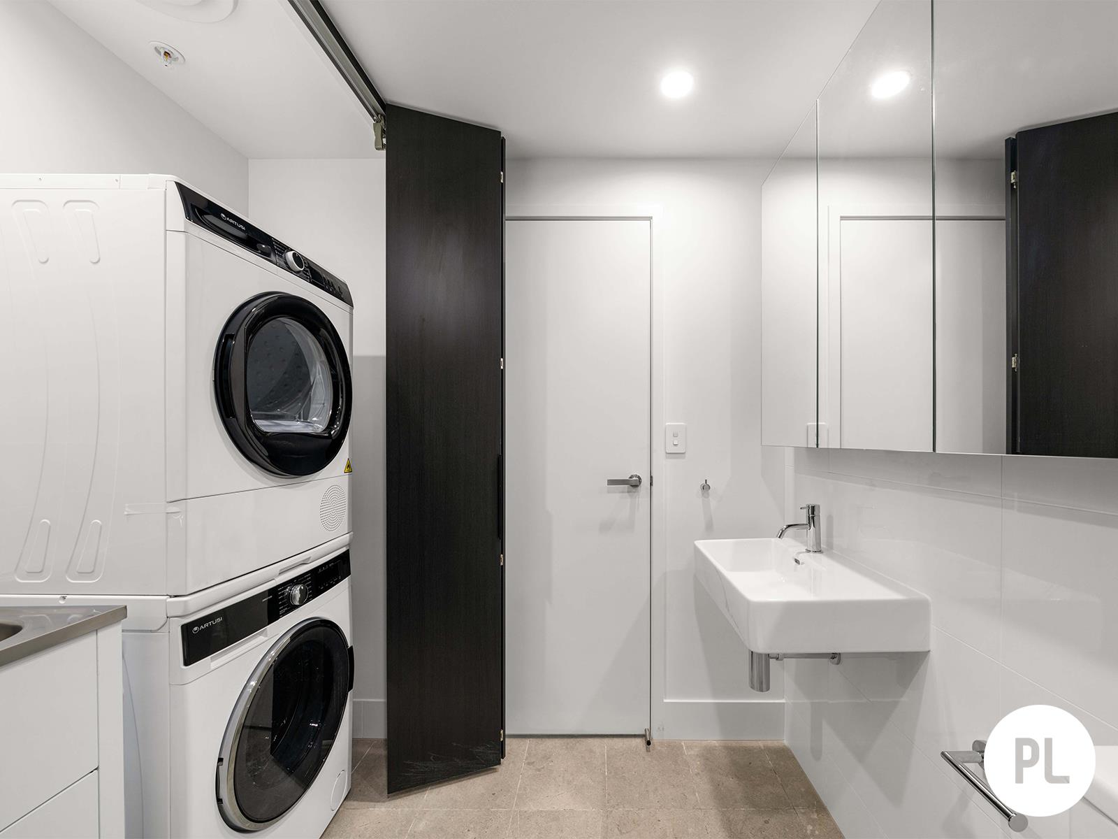 • Euro-Style Bathroom: Functional bathroom with a dedicated shower, vanity and Euro-style laundry, including a washing machine and dryer for your daily needs.
