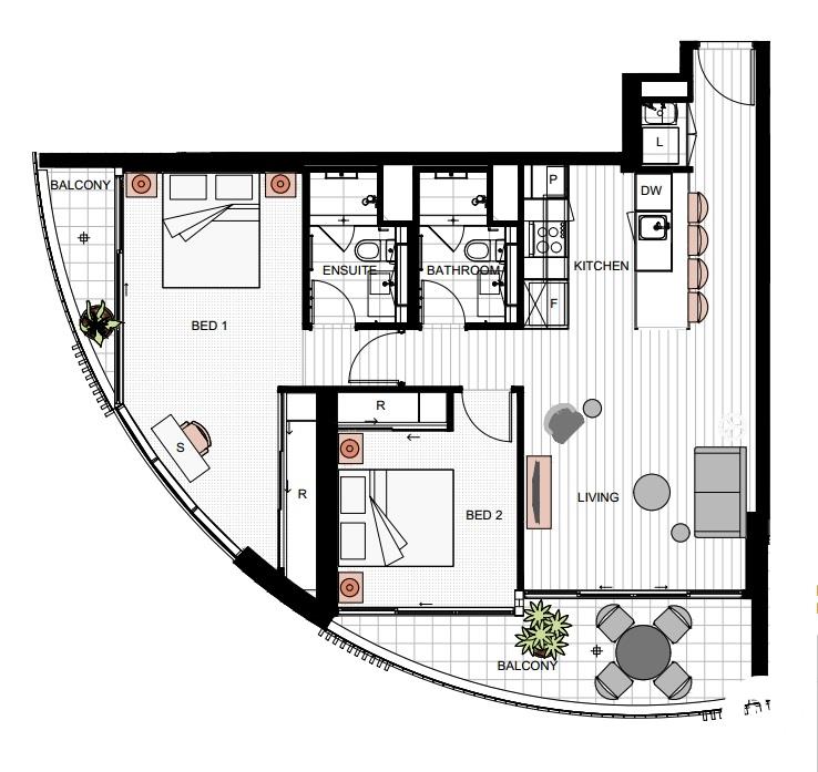 2 bedroom apartment now available, designed with luxury and comfort at the forefront at SOUTH/CITY/SQ Woolloongabba.